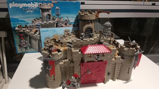 Playmobil Castillo Caballeros del Halcón Referencia 6001. Estructura completa. En excelentes condiciones. Incluye los 3 personaje y el caballo de la referencia, pertrechados con espadas, escudos, cascos, etc... Complementos al 99,99%. Incluye cañón. Incluye caja e instrucciones en perfectas condiciones. Descatalogado. Muy difícil encontrarlo en estas condiciones. Lo que se ve en las fotos. Pincha en mi perfil para más Playmobil.
