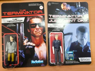 Figuras de acción coleccionables de la saga Terminator. FUNKO SUPER 7 - Figura de The Terminator (1984). - Figura de Terminator 2: Judgment Day (T1000). - Edición ReAction Figures de Funko. - Incluye Summer Convention Exclusive de 2015.