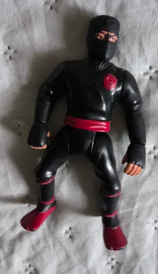 Figura de acción de un guerrero ninja de la serie Yakse de Hasbro, de 1988. Es un enemigo del mal. - Figura de plástico negro. - Cinturón y detalles en rojo. - Máscara negra que cubre la cabeza y el cuello.