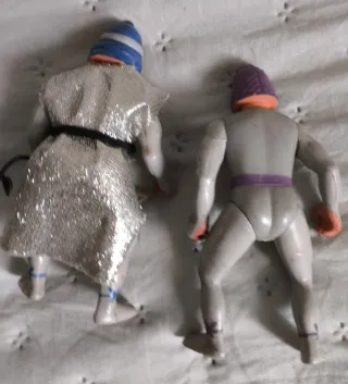 Dos figuras de acción tipo guerreros ninja, con detalles en azul y morado. Ninja warriors tipo Guerreros Jakse Atosa juyba bootleg Enemigos del mal - Figuras de plástico. - Detalle de cinturón y tirantes. - Cabezas y manos de color carne.