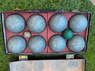 Conjunto de bolas de petanca de metal antiguas. En su estuche Tal cual se observa en las fotos