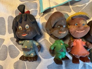 Conjunto de muñecos antiguos MORO originales de la época , incluyendo personajes de la Familia Telerín y dos figuras adicionales. - Figuras de la Familia Telerín. - Dos muñecos adicionales. - Diseño vintage.