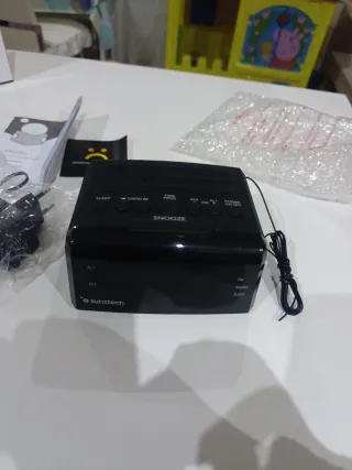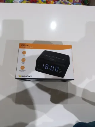 Radio despertador Sunstech modelo FRD35U. - Doble alarma. - Radio FM. - Puerto USB para carga de dispositivos.