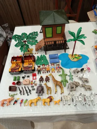 Set de Playmobil de la temática safari en la selva africana. Incluye figuras, vehículos y muchos animales de la sabana. Mítica referencia Playmobil safari 5759 ampliada con multitud de animales.También para completar tu colección.Horas y horas de diversión y coleccionismo. Piratas, victoriano, napoleónicos, soldados, barcos, hospital, kebab, safari, leones, animales, sudistas, nordistas, pirates, nordistes, sudistes ... MIRA MI PERFIL SI BUSCAS REFERENCIAS EXCLUSIVAS PLAYMOBIL!!!🟤🟤🟤🟤
