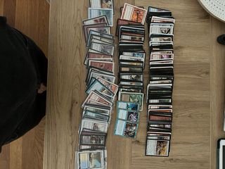 Lote de cartas magic ediciones antiguas sobre finales de los 90 principios del 2000. No se cuantas hay, pero bastantes raras e infrecuentes con su respectiva funda. Incluye unas 80 tierras mas o menos Precio negociable