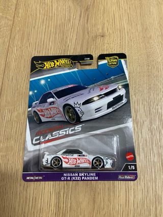 Coche de colección Hot Wheels Premium. - Modelo: Nissan Skyline GT-R (R32) Pandem. - Serie: Modern Classics. - Colección: Car Culture. - Escala: 1/5. - Materiales: Metal/Metal. - Ruedas: Real Riders.