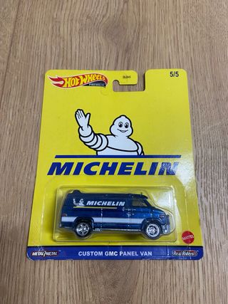 ⚠️ Ver fotos, tarjeta en mal estado. Burbuja intacta. Miniatura de coleccionista Hot Wheels Premium. - Modelo: Custom GMC Panel Van. - Edición especial Michelin. - Escala 1:64. - Serie Real Riders.