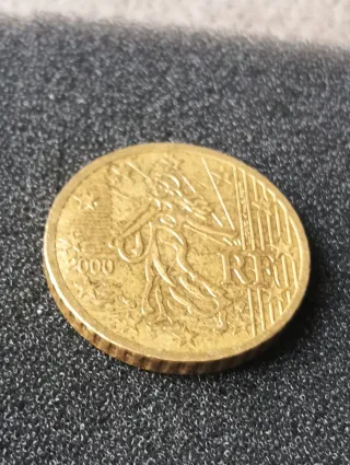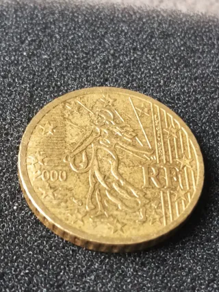 Moneda de 50 céntimos de Francia del año 2000. - Diseño con figura alegórica. - Inscripción RF y estrellas de la Unión Europea.