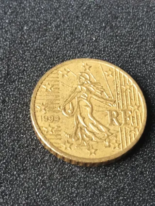 Moneda de 50 céntimos de Francia con el año 1999. - Diseño de Marianne. - Borde con estrellas.