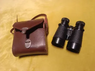 Binoculares Zenith 5x40 en color negro, con su estuche de cuero marrón. - Marca: Zenith - Modelo: 5x40 - Material del estuche: Cuero - Color del estuche: Marrón