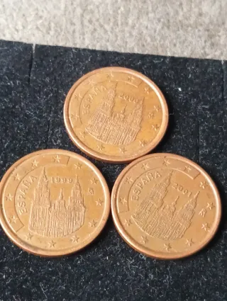 Lote de tres monedas de 5 céntimos de euro de España. - Año 1999 - Año 2000 - Año 2001