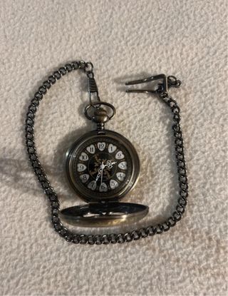 Elegante reloj de bolsillo con cadena. - Diseño automático. - Acabado en bronce envejecido. - Tapa abatible.