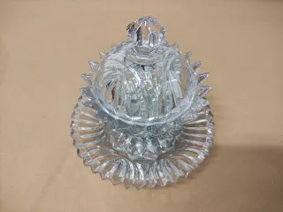 Elegante bombonera o azucarera de cristal tallado con un diseño clásico. - Pieza de cristal antiguo. - Diseño intrincado y detallado. - Incluye tapa.