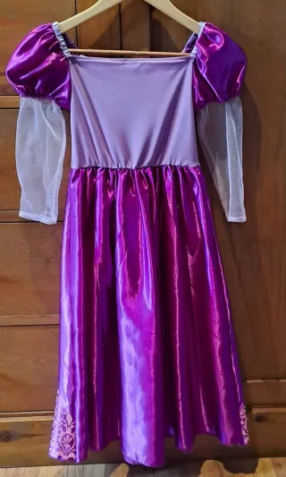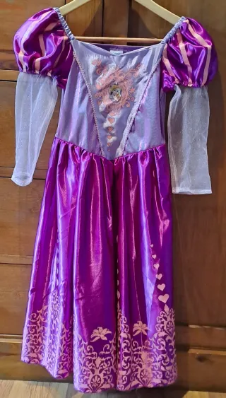 Disfraz de Rapunzel Deluxe de Disney, inspirado en el personaje. - Vestido de manga larga, morado y lila brillante. - Mangas abullonadas. - Detalle de corazón y dibujo de la princesa en el corpiño. - Adornos florales y de corazones en la falda. - La falda es larga hasta el tobillo. Talla 7-8 años, 128 cm. Con embalaje original. Impecable, sin señales de uso. Envío o entrega en mano zona Collado Villalba, Moralzarzal, etc.