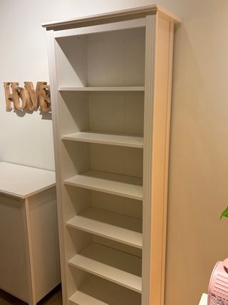 Estantería blanca de estilo clásico, perfecta para organizar tus libros y objetos. - Diseño de líneas rectas y sencillas. - Acabado en color blanco. - Múltiples baldas para almacenamiento.