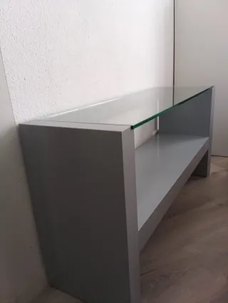 Mueble TV, auxiliar, banco habitación ,juvenil,modeno,versátil múltiples usos. Largo 1,20 / Alto 0,60 / Fondo 0,34-0,35. - Combinación de cristal y madera color gris