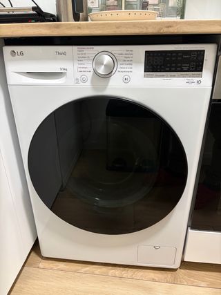 Lavadora secadora LG ThinQ con capacidad de 9kg de lavado y 6kg de secado. Diseño moderno en color blanco. - Modelo: F4DV5509SMW - Tecnología ThinQ - Capacidad de lavado: 9 kg - Capacidad de secado: 6 kg - Programas: Algodón, Eco 40-60, Mixtos, Sintético, Antialérgico, Delicado, Lavado a mano/Lana, Rápido 14, Solo secado, Limpieza de cuba, Descarga de programa. - Pantalla digital con indicadores de temperatura, centrifugado y tiempo. - Motor Inverter Direct Drive.