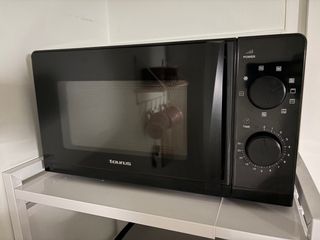 Microondas Taurus en color negro. Diseño moderno y compacto. - Puerta con ventana. - Panel de control con diales. - Marca: Taurus.