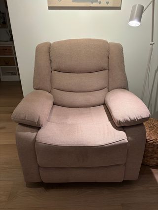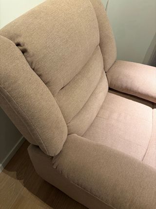 Cómodo sillón reclinable en tono beige. Perfecto para relajarse en casa. Eléctrico. - Tapicería de tela. - Diseño acolchado para mayor confort.