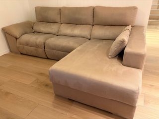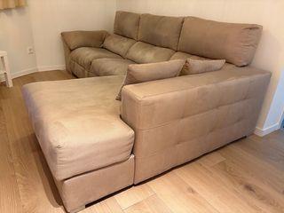 Sofá chaise longue de tela en color beige. Un mueble cómodo y espacioso para tu salón. - Diseño moderno y elegante. - Tapicería suave al tacto. -Precio nuevo 1.500€