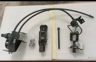 Kit de soporte para rueda de repuesto de coche. Incluye todos los elementos necesarios para su instalación. - Soporte metálico principal. - Cableado y conectores. - Tornillería y anclajes.