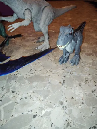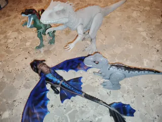 Conjunto de figuras de animales prehistóricos y un dragón. - Figura de dinosaurio grande de color gris. - Figura de dinosaurio verde con cresta. - Figura de dinosaurio pequeño de color gris con manchas negras. - Figura de dragón azul y negro con alas desplegadas. EL GRANDE MIDE 60CM Y EL AZUL 50 CENTÍMETROS, ARTICULADOS POR FAVOR ESCRIBAN SOLAMENTE PERSONAS INTERESADAS SI NO ESTÁS REALMENTE INTERESADO PIDO POR FAVOR QUE NO ESCRIBA GRACIAS
