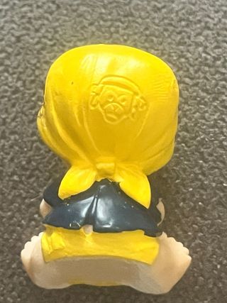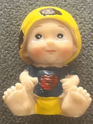 Figura coleccionable de Mini Bebé Pelón. - Diseño inspirado en Pablo Alborán. - Ropa azul con detalle rojo. - Gorro amarillo con detalles marrones.