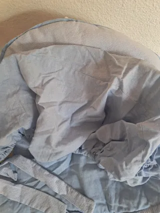 Saco acolchado para maxicosi de bebé en color azul claro. Ideal para mantener al bebé abrigado. - Tejido exterior de algodón. - Forro interior suave. - Cintas de sujeción a cuadros. Incluye la esterilla, saco, capota, sombrilla y soporte para poner en el carro También bolso a juego para el carro