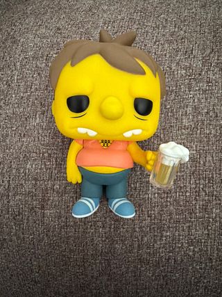 Figura coleccionable de Barney Simpson de Los Simpson. - Personaje: Barney Gumble. - Incluye un vaso de cerveza. - Diseño estilo Funko Pop.
