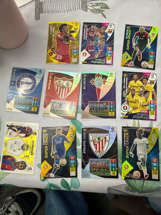 Colección de cartas Adrenalyn XL de la temporada 2021-2022. - Incluye cartas de jugadores como Casemiro, Camavinga, Piqué, Pedri, Araujo, Stoichkov, En-Nesyri, Albiol y Pau Torres. - Algunas cartas son 'Super Crack' y 'Dobles Figuras'. - Incluye cartas de equipos como D. Alavés, Sevilla FC, RC Celta y Athletic Club. 2€ cada carta (precio variable)