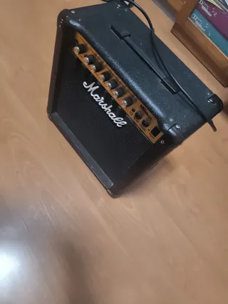 Amplificador de guitarra Marshall MG15CDR en color negro. Ideal para practicar en casa o para pequeñas actuaciones. - Dos canales (limpio y overdrive). - Ecualizador de 3 bandas. - Salida de auriculares. - Entrada de CD/MP3.