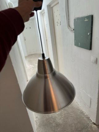 Lámpara colgante de aluminio de Ikea. Su diseño moderno y acabado metálico la hacen versátil para cualquier espacio. - Material: Metal - Color: Plateado