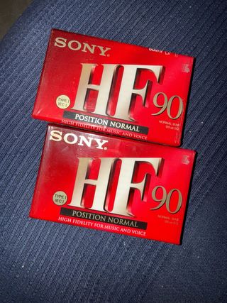 Lote de dos cintas de casete de audio Sony HF90. - Tipo: Cinta de casete de audio. - Modelo: HF90. - Posición: Normal. - Fidelidad: Alta fidelidad para música y voz. - Sesgo: Normal Bias 120 µs EQ.