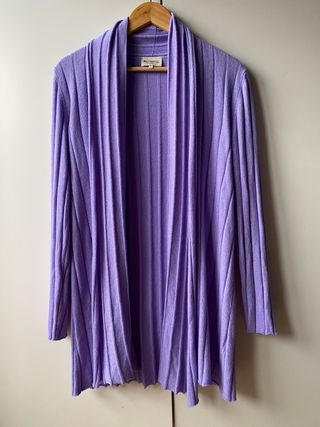Preciosa chaqueta de punto ribeteado de 2 cabos de mezcla de cachemira, seda y viscosa, sencilla y elegante. Un básico de tu armario versátil . De corte oversize ideal para llevar sobre camisa. Largo 70 cm. - Tejido suave y ligero. - Diseño abierto. - Manga larga.