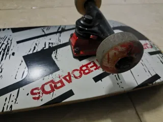 Monopatín marca Electra con diseño llamativo. - Tabla con diseño gráfico blanco, negro y rojo. - Trucks Electra negros y rojos. - Ruedas grises y amarillas.