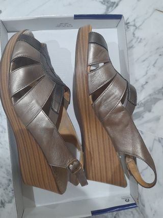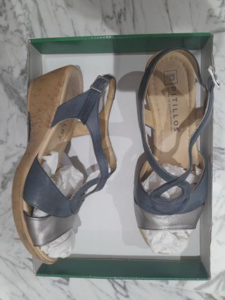 Sandalias plateadas cuña esparto