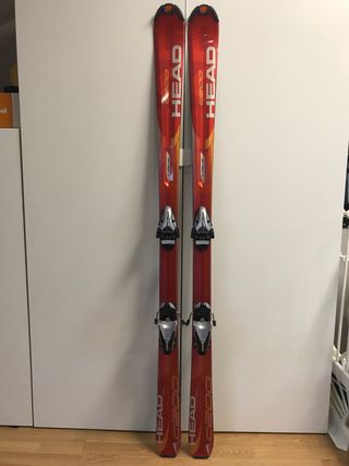 Esquís Head C200 de tipo carving para adulto. - Medida 163 cm - Diseño en color rojo y naranja. - Fijaciones incluidas. - Suelas en buen estado