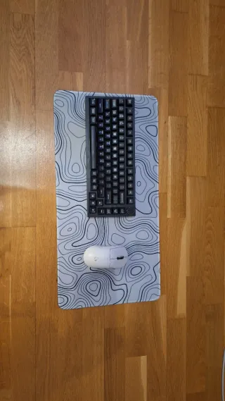 Alfombrilla de gran tamaño con diseño de líneas topográficas en blanco y negro. Ideal para gaming o uso general. - Diseño moderno y minimalista. - Superficie lisa para un deslizamiento óptimo del ratón. - Base antideslizante para mayor estabilidad.