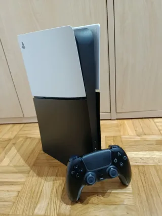 Consola PlayStation 5 Slim Digital Edition con 1TB de almacenamiento. - Diseño elegante en blanco y negro. - Modelo Slim, más compacto. - Edición Digital, sin lector de discos. - Dualsense negro.