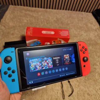 Consola Nintendo Switch con Joy-Cons en azul y rojo. Incluye todos los accesorios originales con su caja Tiene M.4.G.I.4