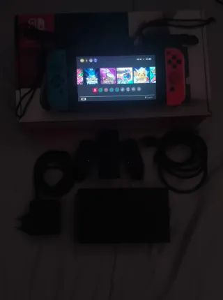 Consola Nintendo Switch V2 con sus accesorios. - Incluye base de carga con cargador - Dos mandos Joy-Con originales. - Agarre grip cómodo para Joy-Con - Pulseras para Joycon - Estuche de transporte negro. Nota: No incluye su caja Esta en perfectas condiciones Puede ver las fotos y comprobarlo