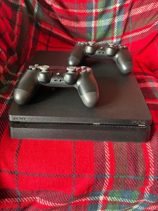 Consola PlayStation 4 en color negro. En perfecto estado, estuvo siempre con funda, muy cuidada, se vende porque me regalaron la 5. - Incluye dos mandos. - Modelo PS4 Slim. -500GB