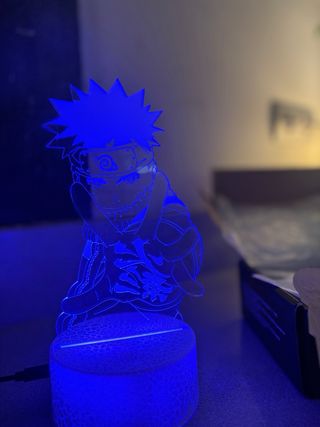 Lámpara de noche con diseño de Naruto, ideal para los fans del anime. Incluye control remoto para cambiar los colores. - Fabricada en acrílico y plástico. - 3 laminas intercambiables - Base con efecto craquelado. - cable USB - mando con multiples opciones color e intensidad