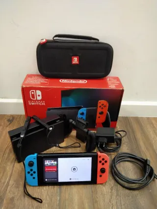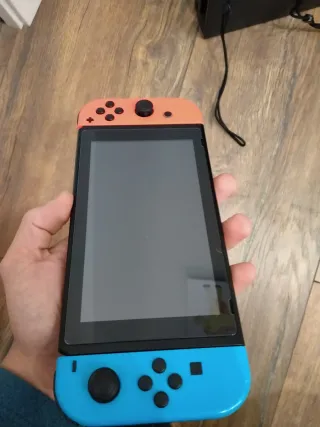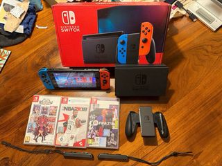 Consola Nintendo Switch en muy buen estado, se vende por adquisición de modelo superior. - Incluye Joy-Cons en azul y rojo. - Incluye base de carga para Joy-Cons. - Incluye tarjeta de memoria - Incluye Joy-Cons amarillo y azul
