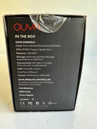 Consola de videojuegos OUYA. - Diseño elegante en plata y negro. - Incluye mando. - Cable HDMI - Transformador con ¡OJO, enchufe UK! - Se incluye la caja original