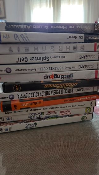 Lote de videojuegos para PC y PlayStation 2. - Medal of Honor: Allied Assault (PC) - Tom Clancy's Splinter Cell (PC) - Tom Clancy's Splinter Cell: Pandora Tomorrow (PC) - The Sims (PC) - DJ Hero (PS2) - Prince of Persia: The Sands of Time Collector's Edition (PS2) - Need for Speed: Undercover (PS2) - Farenheit (PC) - Getting Up: Contents Under Pressure (PS2) - Valueline (PC) Precio lote 10€. Preguntar por separado 1€