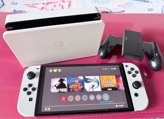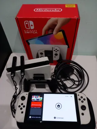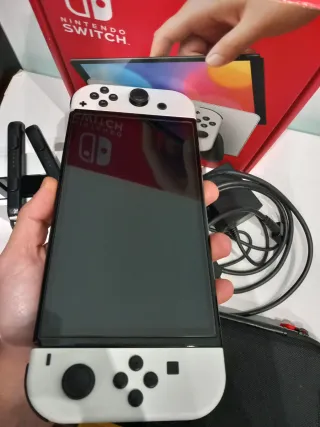 Consola Nintendo Switch modelo OLED en color blanco como nueva , es prácticamente un reestreno ya que apenas se ha usado y no tiene una sola marca ni rasguño en ningún sitio, la pantalla está completamente protegidacon un cristal templado de protección desde su compra y siempre ha estado en funda y cuidada por un adulto. Incluye todos sus accesorios originales. - Pantalla OLED de 7 pulgadas. - Base de carga y reproductora de TV. - Joy-Con blancos y correas. - Mando porta joycons. - Cable de alimentación y HDMI.