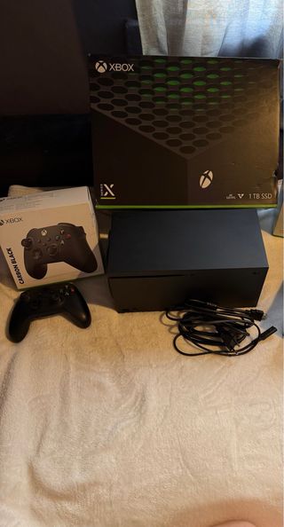 Consola Xbox Series X con disco duro de 1TB con la caja incluida. Ideal para regalar estas Navidades! - Incluye mando Carbon Black con su caja. - Incluye cables de conexión. - Incluye dos juegos: Elden Ring(SIN DLC) y Call of Duty Modern Warfare 3. Tiene un año de garantía todavía en Microsoft como demuestra la última foto. Se vende por no usar. Precio algo negociable. Sony playstation pro gaming pc nintendo asus nvidia dlss gamer
