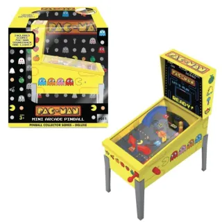 Máquina de pinball arcade de sobremesa con temática de PAC-MAN. Ideal para coleccionistas y aficionados a los juegos retro. - Diseño compacto y portátil. - Gráficos y personajes clásicos de PAC-MAN. - Estructura amarilla brillante.