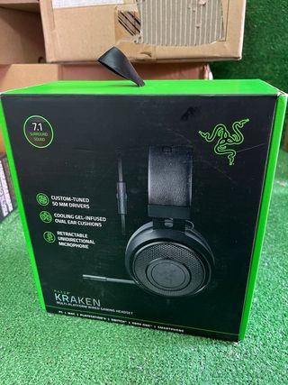 Auriculares gaming Razer Kraken en color negro con detalles en verde. - Diseño circumaural. - Micrófono unidireccional. - Diadema acolchada. - Almohadillas de espuma viscoelástica.
